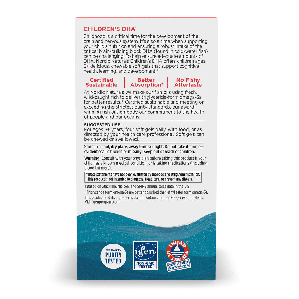 Like all Nordic Naturals fish oils, Children's DHA is third-party tested and surpasses strict international standards for purity and freshness.